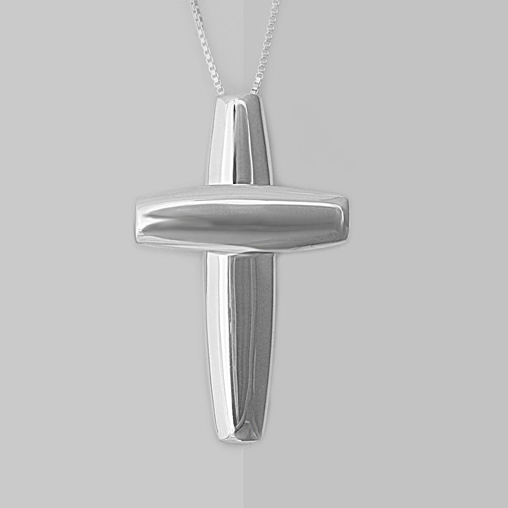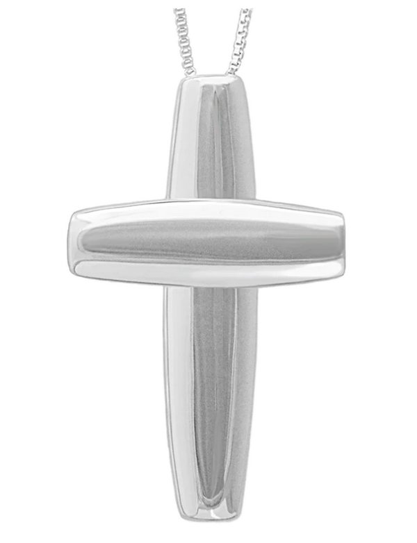 Time and eternity merged at the cross. This new Bold Contemporary Cross comes in a Diamond Dust (satin) or High Polish finish. It hangs on an 18” Box chain with a 2-inch extender. Its fluid, streamlined design points ahead, reminding you that no matter where you go or whatever may happen in your future, God is with you! So, be bold and wear this powerful expression of faith as you overcome every obstacle that might arise. God adores You!