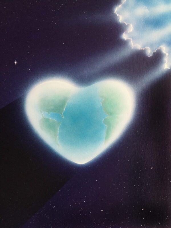 Here we are viewing our world through the eyes of God’s love. The earth is being transformed by the power of love as it approaches the light from above that draws us ever closer to the dawning of the kingdom of heaven. Hand Signed Lithograph – open edition. Printed on archival, acid-free paper. Made in the USA.