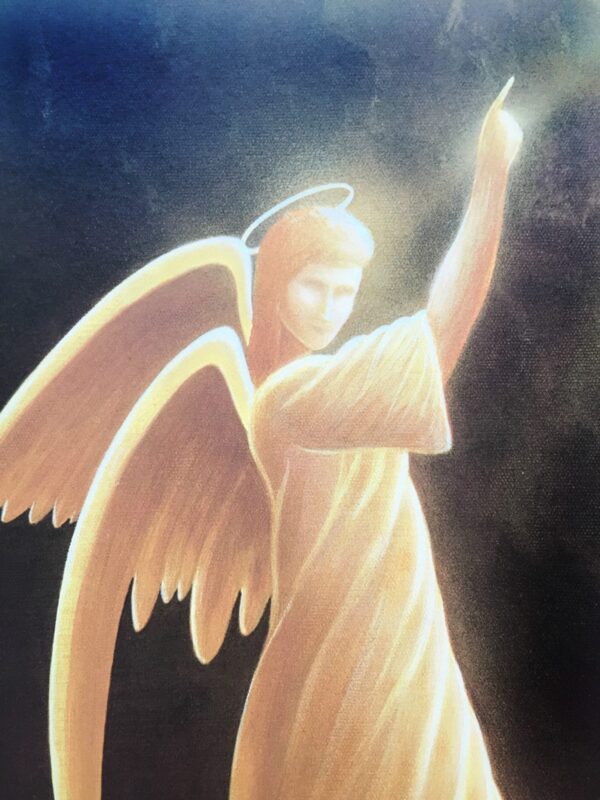 “Behold I send an angel before you to guide you and guard you along the way, and to lead you into the place that is prepared for you.” This unframed lithograph measures 8-1/2″W x 11″H and is hand-signed by the artist. A perfectly sized accent print that fits standard -sized frames.