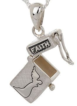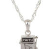 Protect your prayers inside this sterling silver box pendant, inscribed with the words faith, love, and hope. Crafted in a mix of highly polished detailing and brushed texturing, its decorative motifs include a kneeling angel, a heart with wings, and a signature petite angel.