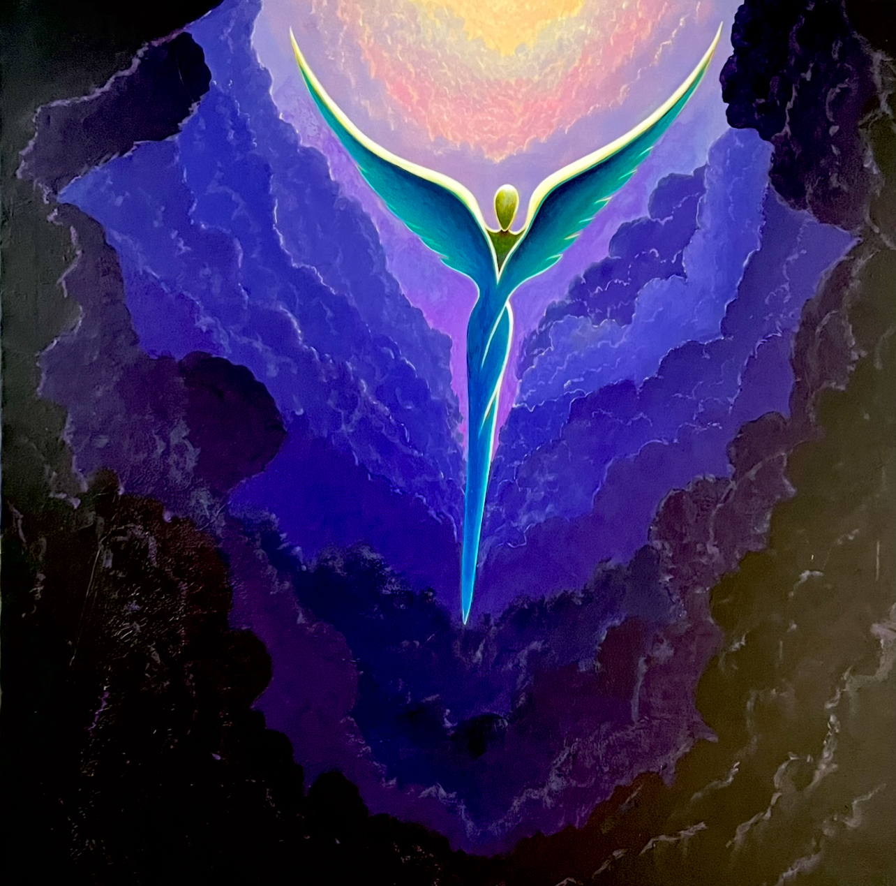 In this luminous expression, Lavaggi’s classic Angel of Reconciliation rises toward the everlasting light above, clothed in radiant, gem-like colors that shimmer with divine beauty and heavenly promise. The ascending form symbolizes restoration, healing, and the sacred return of the soul into harmony with God.