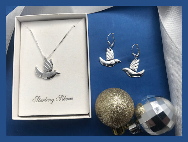 The dove image has always been a symbol of peace, hope and love. Wear and share this pure and gentle message with this smooth, brightly polished sterling silver dove pendant and matching earrings. Fly away with Petite Spirit Doves, relaxing the hold on your cares, and releasing yourself to receive Heavenly Peace.