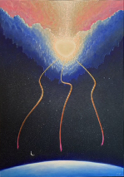 “Ribbons of Love” portrays the radiant heart of God pouring forth streams of mercy, grace, and divine love upon the earth. These luminous ribbons descend like tender beams of heavenly light, symbolizing the unending flow of God’s compassion reaching every soul below. The artwork becomes a living reminder that love from above is not distant or rare — it is continual, constant, generous, and beautifully transformative.