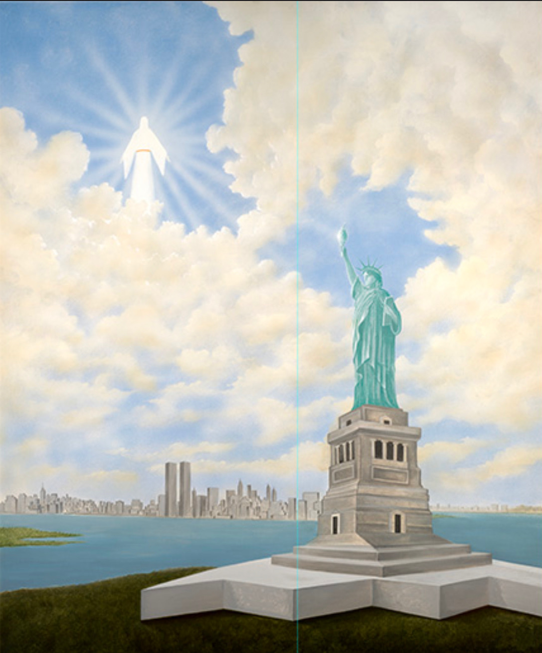 Keywords: patriotic art, Statue of Liberty painting, American freedom, inspirational patriotic artwork, faith and patriotism, New York skyline art, sovereign God, One Nation Under God, historical patriotic art, Lavaggi original.