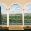 This veranda with its columns is the portrait of a lovely view of an idealistic italian landscape full of beautiful flowers.